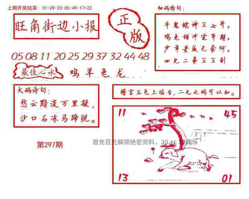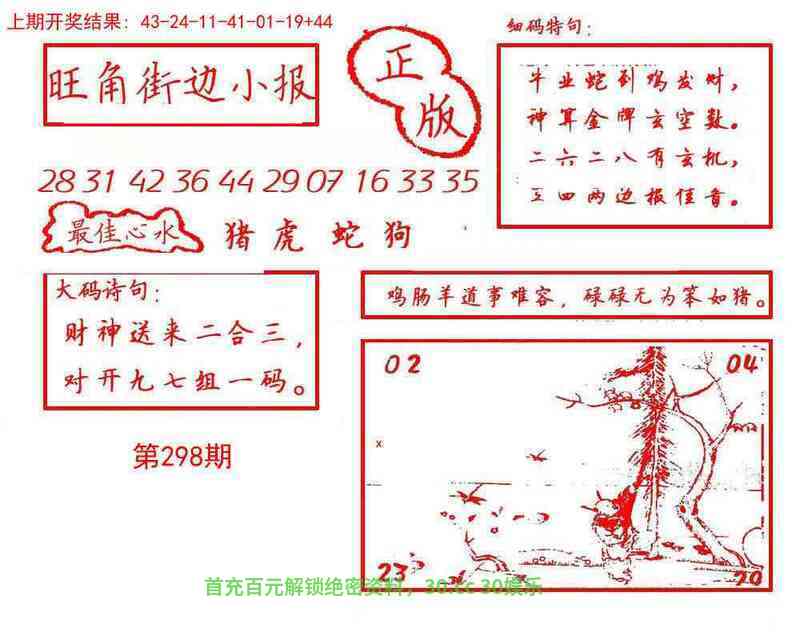 | 298期 | 马 | 蓝波单 | 8尾 | 开羊23 |