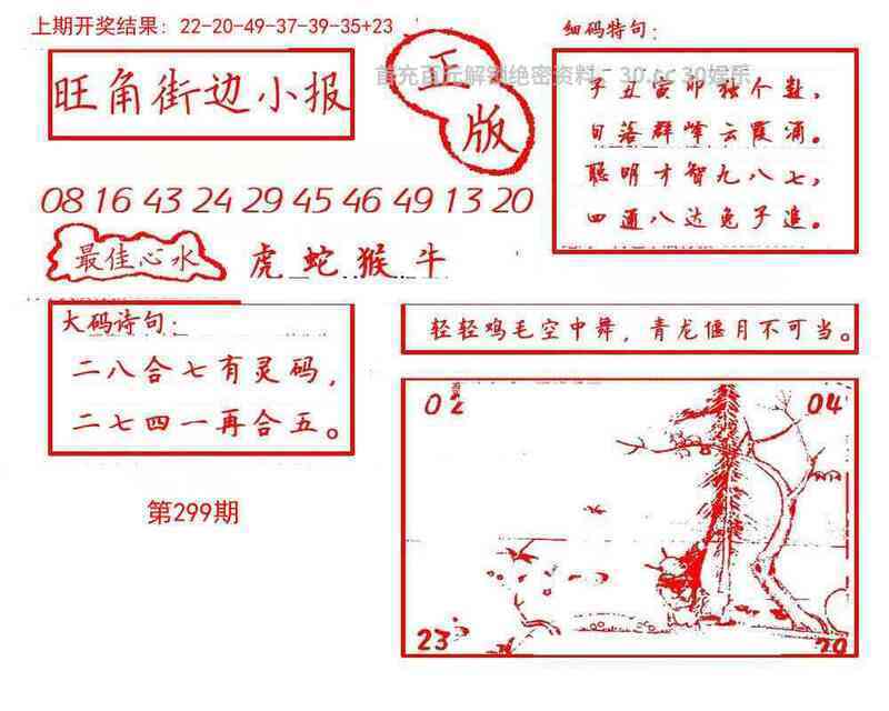 | 299期 | 鼠 | 红波双 | 6尾 | 开蛇49 |