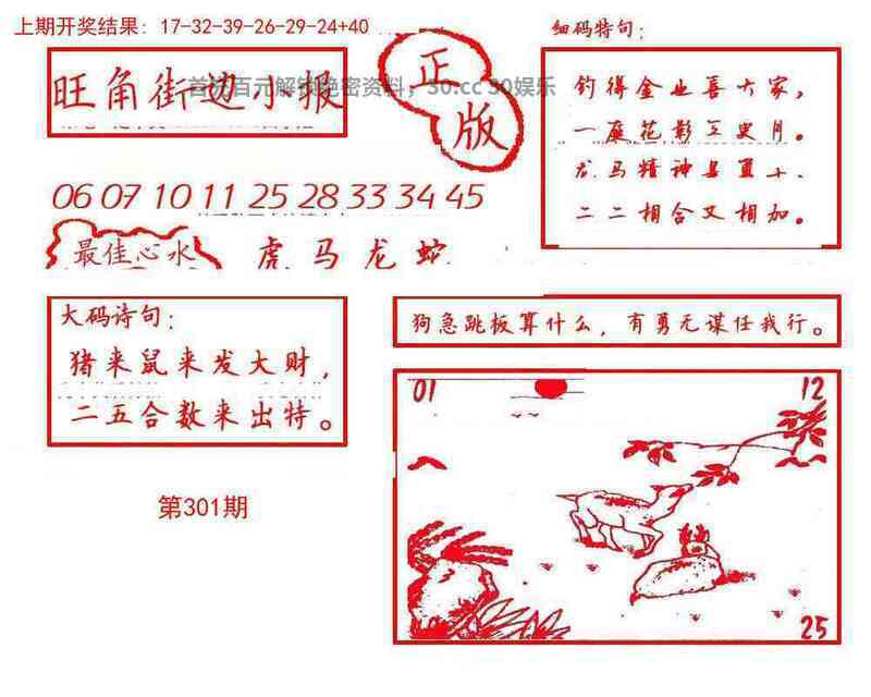 | 300期 | 马 | 红波单 | 8尾 | 开虎40 |